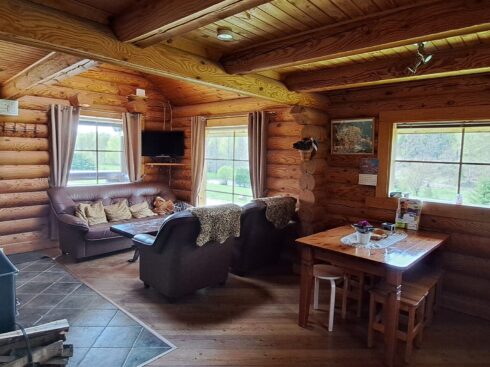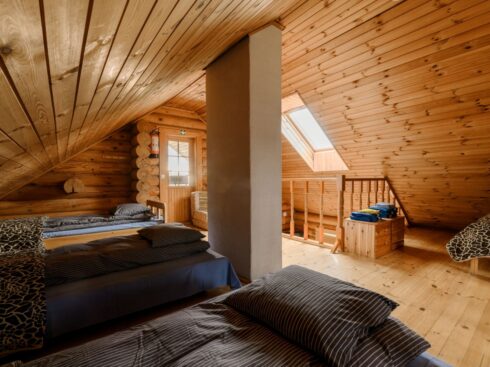 Kahekorruselises palkmajas on esimesel korrusel põrandaküte, puhkenurk kamina ja pehmemööbliga, TV, WiFi. Magamistuba kahele inimesele, köök, dušhiruum, saun, wc. Teisel korrusel avatud ruum kus on üks kaheinimese ja kolm üheinimese voodit.