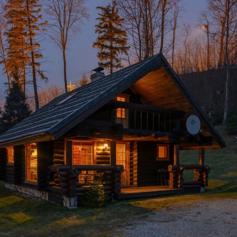 Бревенчатый домик рассчитан максимум на 7 человек. Заезд с 15:00 и выезд в 12:00.